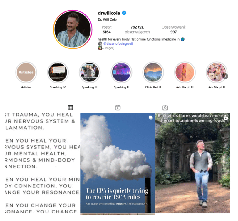 Dr Will Cole na swoim profilu na Instagramie szerzy wiedzę na temat medycyny funkcjonalnej, udostępniając informacje na temat diety i stylu życia.